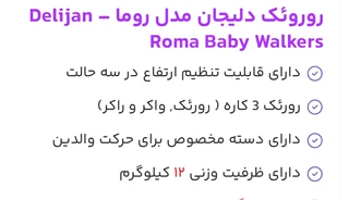 برای زمانیکه کودکتان شروع به قدم برداشتن میکند مناسب است و به راه رفتن و یادگیری کودک کمک میکند. کودک با کمک روروئک تعادل در راه رفتن را یاد میگیرد و با قدم برداشتنهای کودک ماهیچه های کودک تقویت میشود.